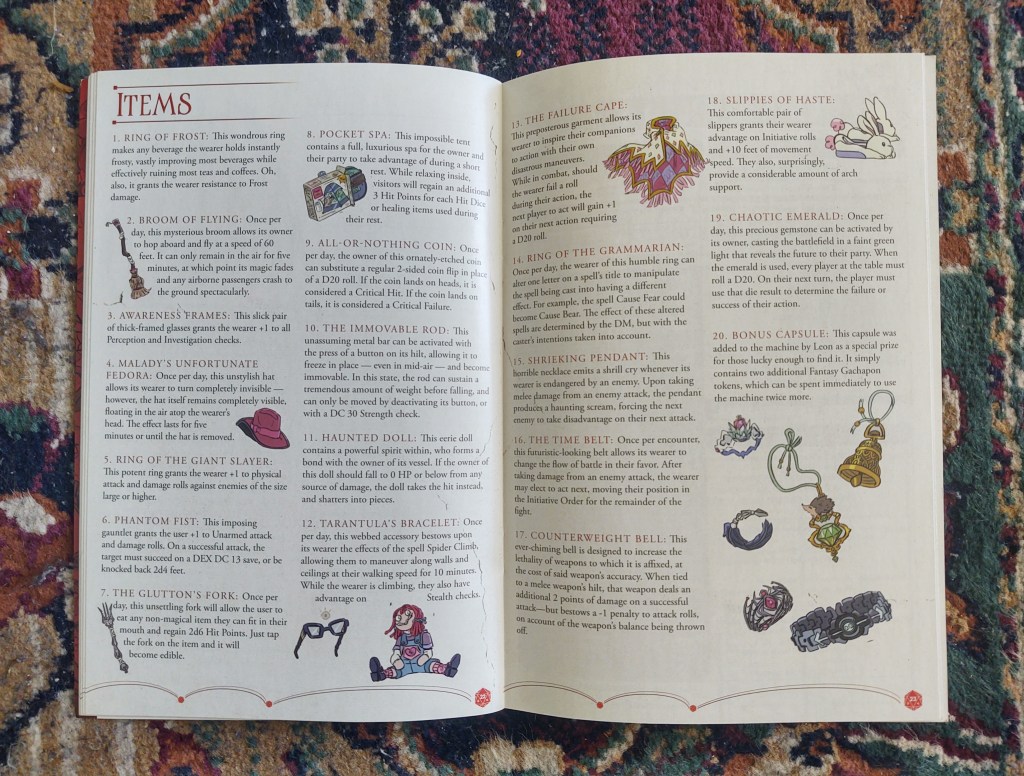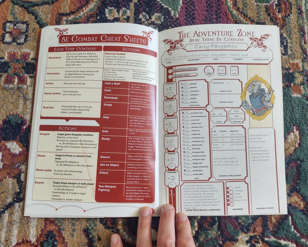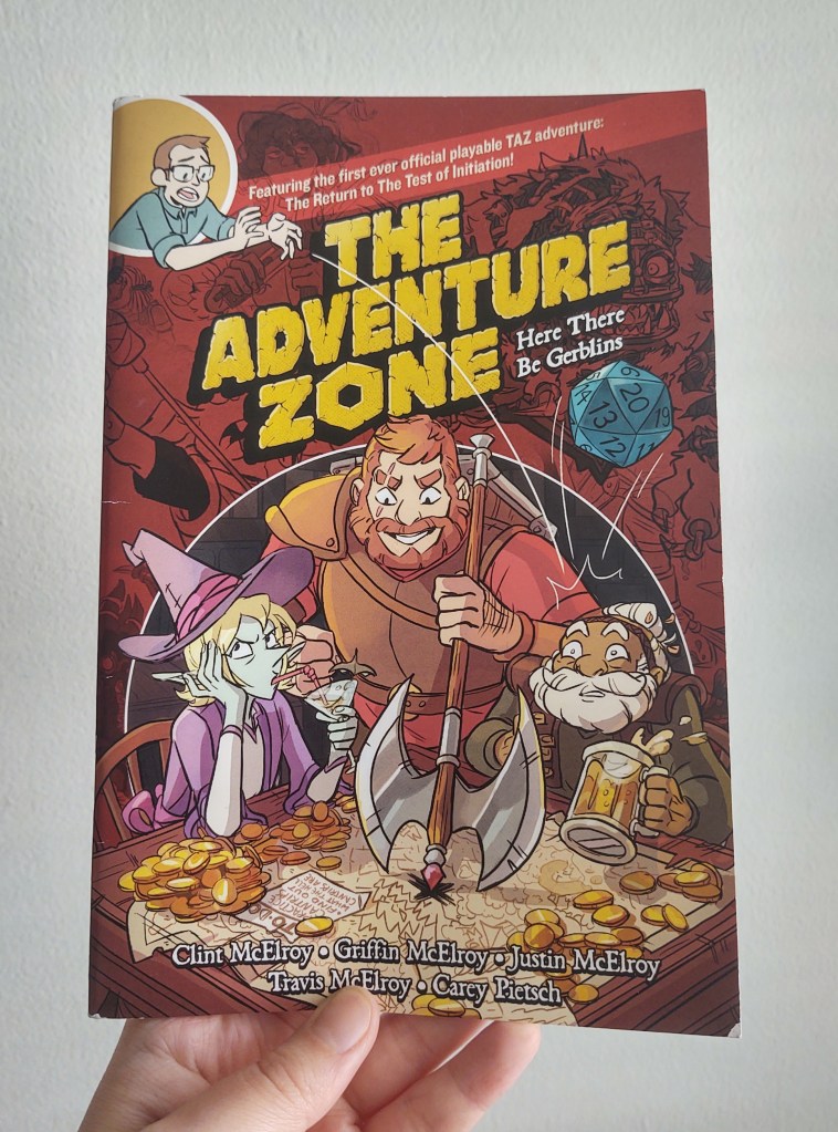 I didn’t get very far in the TAZ podcast, but I knew a few people who loved it, so I made sure to stop by a booth outside the main exhibit floor that was handing ARCs and couple other fun extras. At first, I thought this booklet was just a chapter preview they were trying to get rid of, but it turned out the be a campaign guide with character sheets and an glossary.