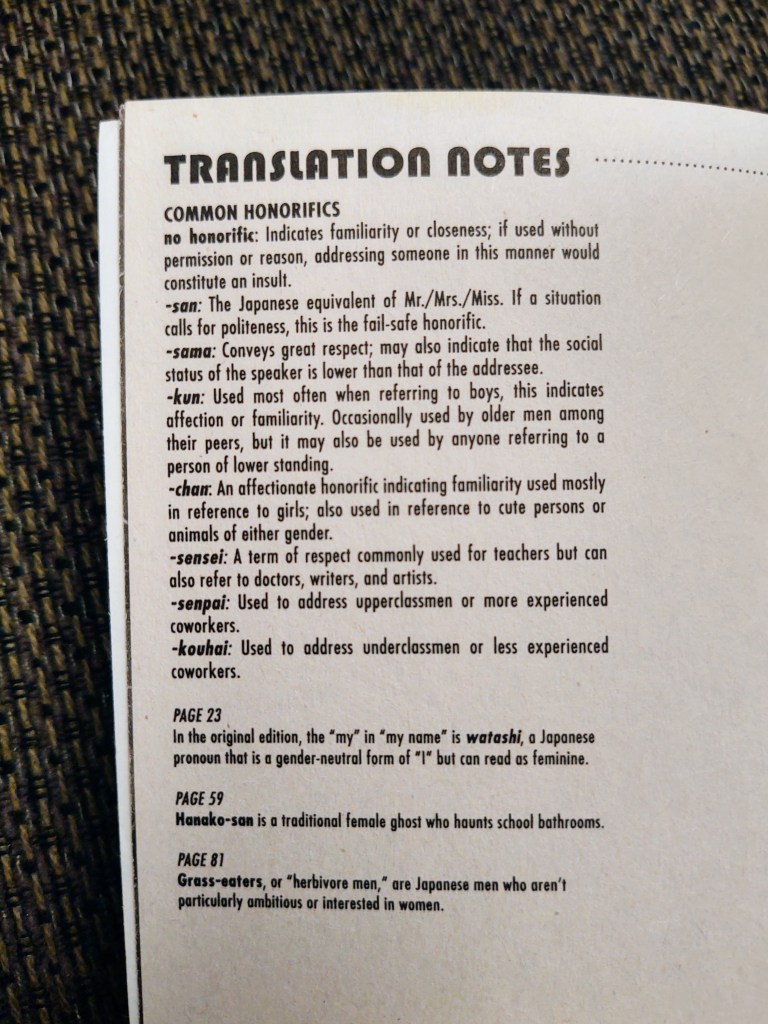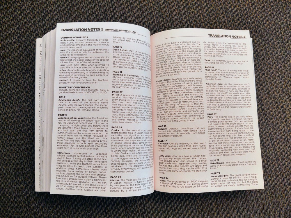 As I was flipping through my manga library, I noticed that, outside of Azumanga Daioh, I wasn’t finding a lot of translation notes in the 4-koma comedy series on my bookshelf. But do we really need them today? Maybe not.