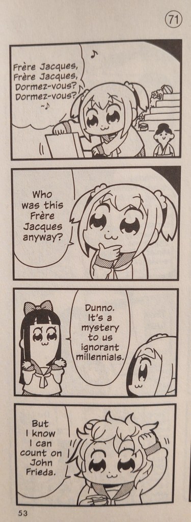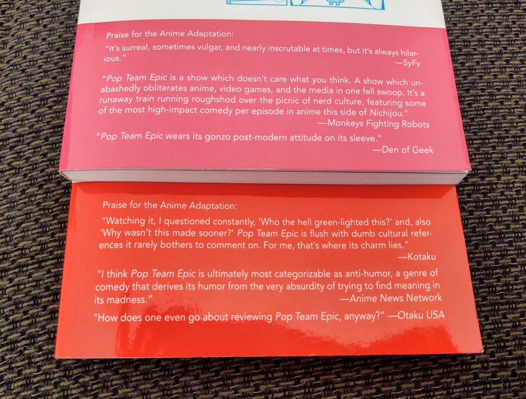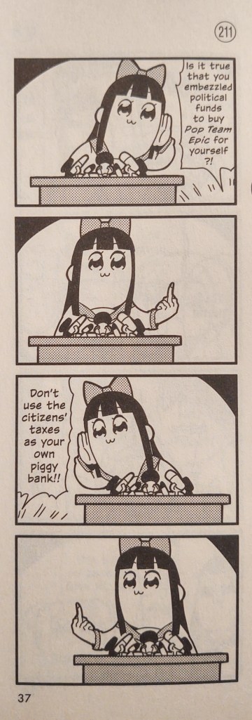 And then there’s Pop Team Epic. How does one explain Pop Team Epic? For starters, here are the blurbs Vertical Comics put on the back covers of their English editions: