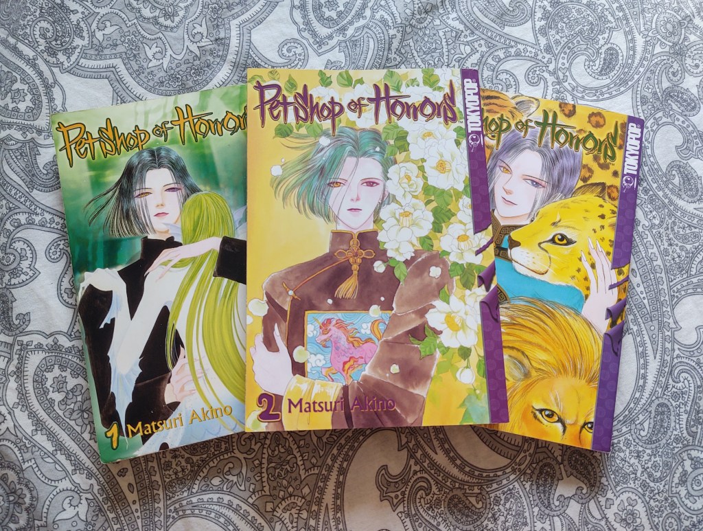 I received the entire TokyoPop run of the original Pet Shop of Horrors series last year as a birthday gift and have been slowly revisiting my high school years through them. Only 8 of the 12 volumes of the sequel series Shin Pet Shop of Horrors (localized in English as Pet Shop of Horrors: Tokyo) were released in the US before TokyoPopโs 2011 closure. While looking up more about sequel, I discovered that there are two other spin-off series about the Count D universe, one of which is still ongoing. It appears that the North American licenses for these are all currently unclaimed. Iโm very conservative when it comes to collecting entire series, but I would probably make an exception — and buy another shelf — for all 30+ volumes.