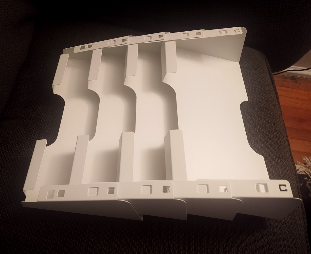 The rack pockets are a bit deeper than I’d like. Some of my zines are only just barely visible, and the gaps at the bottom mean some floppies have to be balance in a very specific way. But for their price, durability, and volume, I’m happy with them. These racks emptied both magazine boxes, and there’s still plenty of room left for all the stuff on my small press wishlist.